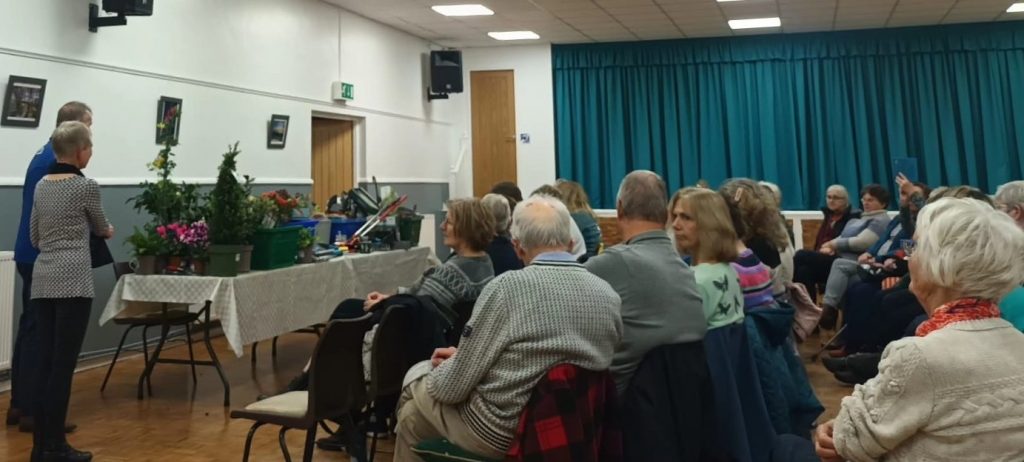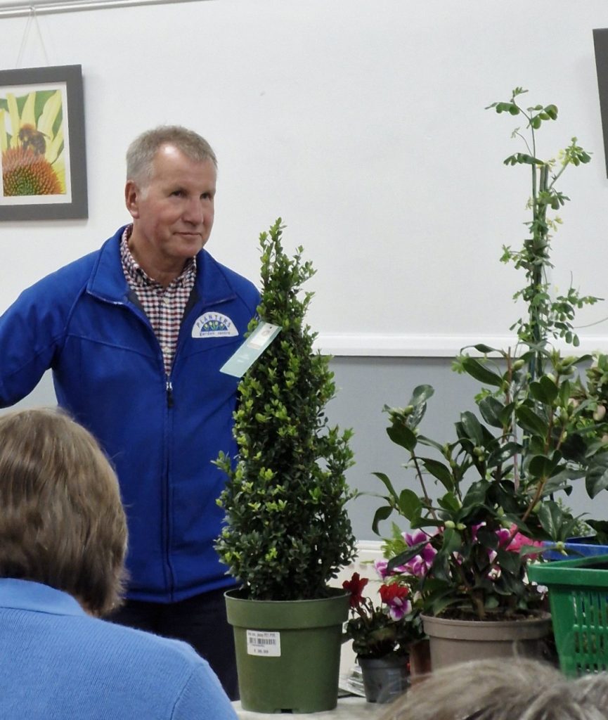 At our November meeting we welcomed Gerald Ingram the founder of Planters Garden Centres who explained how he originally started running his business in his spare time and it blossomed from there over the years to become a family-run group of five garden centres. He had brought a wide selection of possible presents for anybody from enthusiastic experienced gardeners to complete beginners and kindly neighbours – tools, kits, pots and wildlife treats as well as some plants. He gave a very amusing talk with various useful gifting suggestions, including treats for ourselves, and donated his fee for the evening to Perennial, The Charity for Gardeners and the Horticulture community.