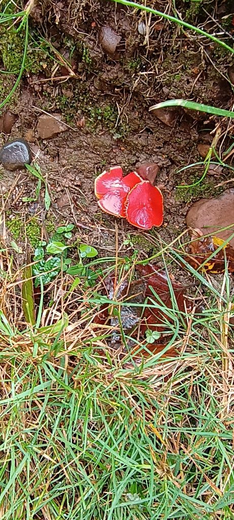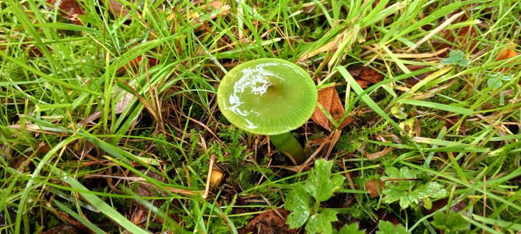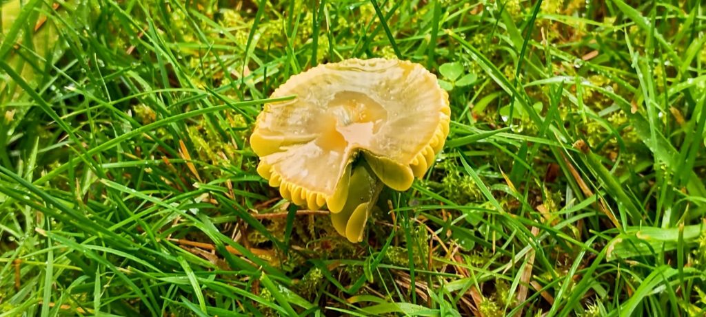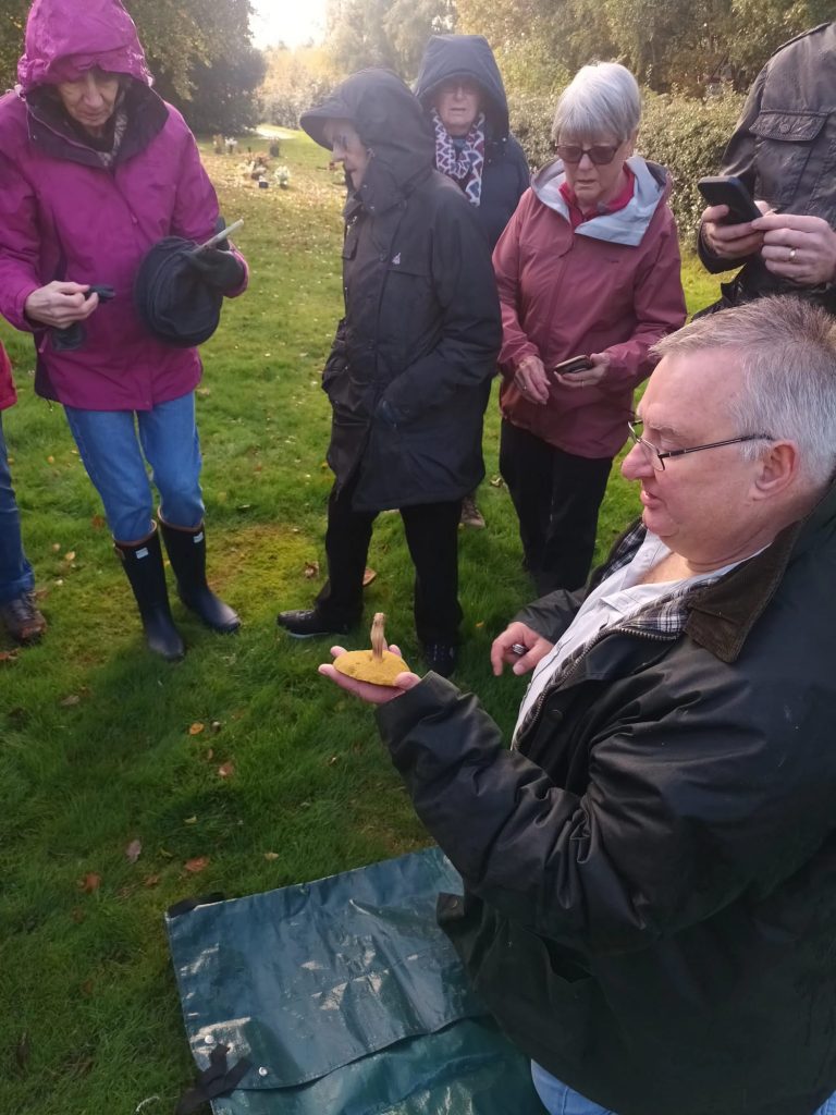 Some of our members braved a drizzly Saturday to enjoy a guided tour of the waxcap delights of Gentleshaw Churchyard with Richard Sunter, our speaker from February this year. It’s a site of regional importance with over 14 species of interest, many of which are quite stunning, as you can see from the photos. The specific conditions for waxcaps to thrive are becoming rare, so those of us who couldn’t make it missed a real treat! The group then made a donation towards the upkeep of the churchyard. Thank you to Christie for organising and for the pictures, please scroll to the bottom of the post to see them all.